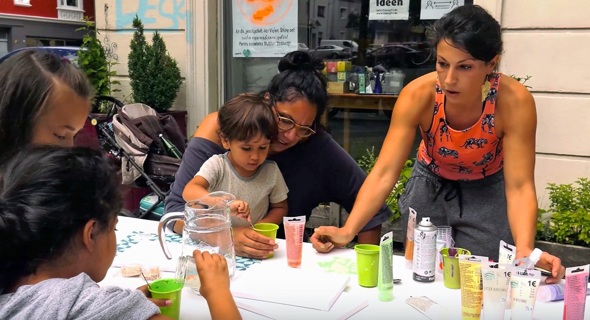 Die Künstlerin Virginia Gómez ist vielen bekannt im Borsigplatz-Quartier. Seit Jahren bietet sie immer wieder kreative Workshops im Programm der Machbarschaft Borsig11 an, vom „Pouring“ mit Acryl-Farben bis zur Fertigung von Blumenschmuck mit Epoxid-Harz.