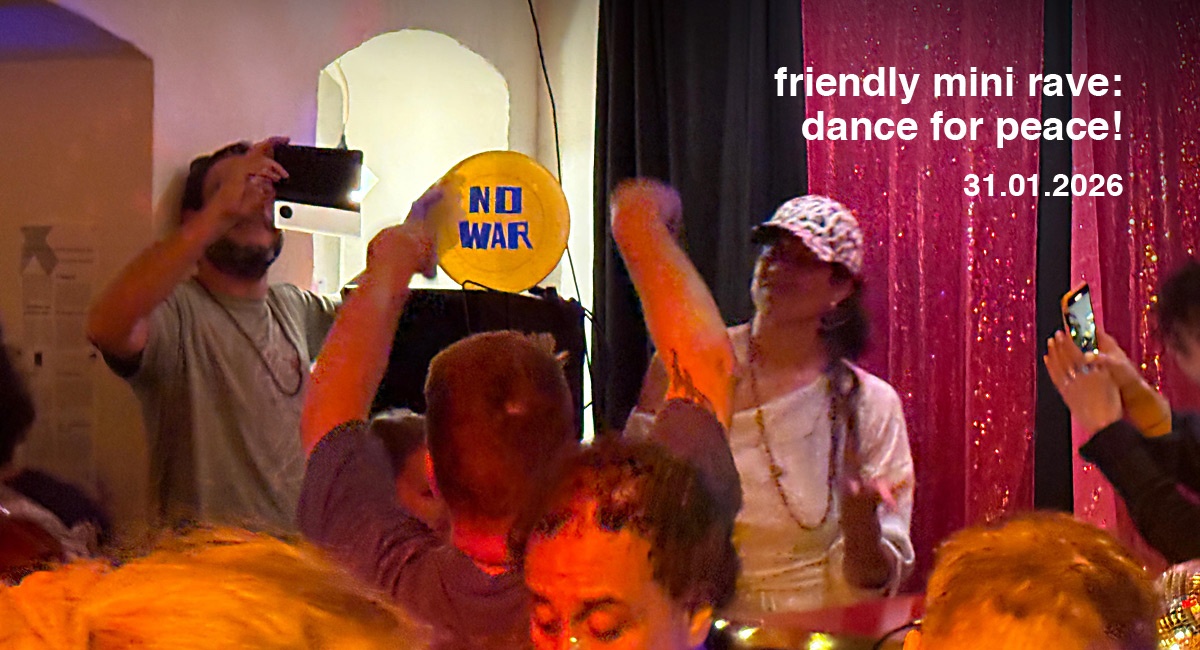 Am 31. Januar starten wir im Langen August mit einem Friendly Mini Rave ins neue Jahr: No War! Dance for Peace!